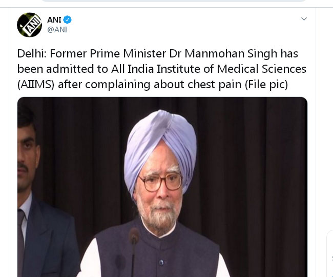 सीने में दर्द की शिकायत के बाद पूर्व प्रधानमंत्री मनमोहन सिंह एम्स में हुए भर्ती