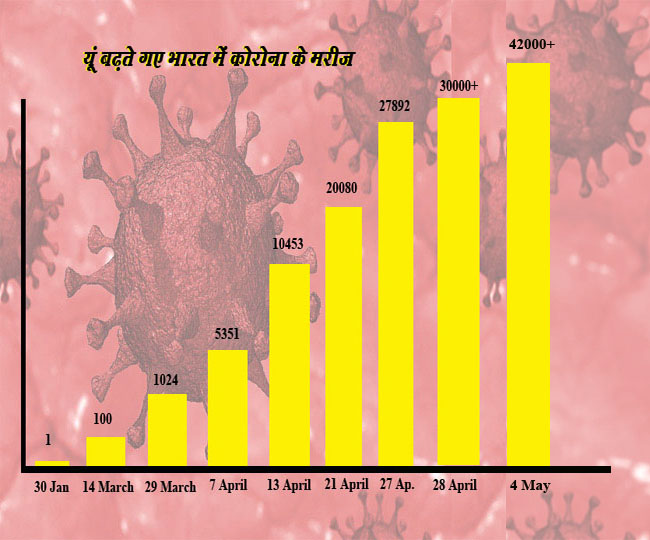 भारत की बात करें तो बीते 24 घंटों में जितने मामले सामने आए हैं वो अब तक एक दिनम अब 3900 नए मामले सामने आए हैं, जो एक दिन में सामने आए अब तक के सबसे ज्यादा मामले हैं। वहीं बीते 24 घंटों में 195 लोगों की मौत हुई है, यह भी एक दिन में भारत में हुई मौतों की सबसे ज्यादा संख्या है। पिछले 24 घंटे में भारत में कोरोना वायरस (COVID-19) के 84 हजार से ज्यादा सैंपल टेस्ट हुए हैं। आईसीएमआर के मुताबिक अब तक भारत में 11,91,946 टेस्ट हुए हैं।